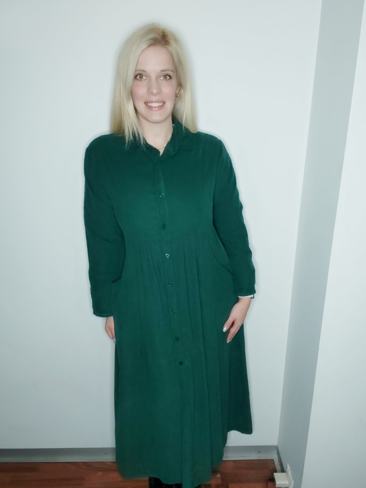 Φόρεμα κοτλέ σεμιζιέ μακρύ με τσέπες