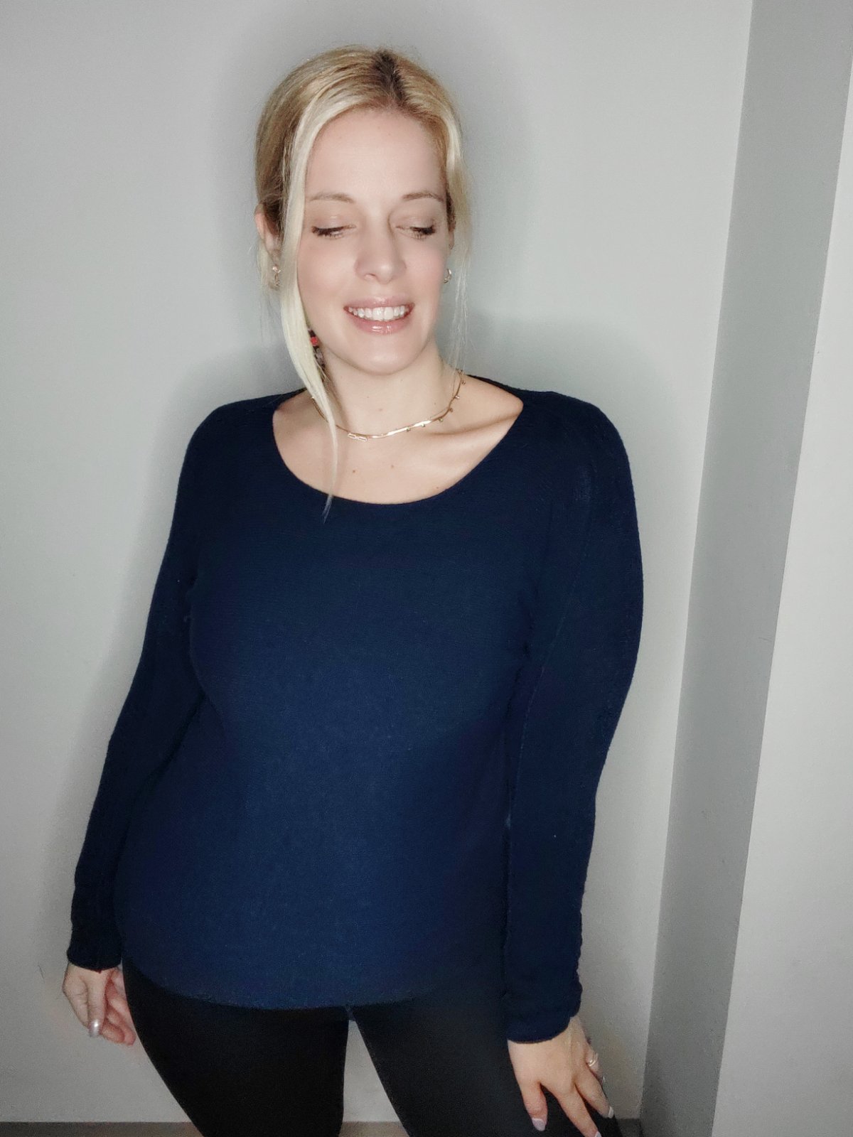 Πουλόβερ με στρογγυλή λαιμόκοψη και μικρό άνοιγμα στο πίσω μέρος