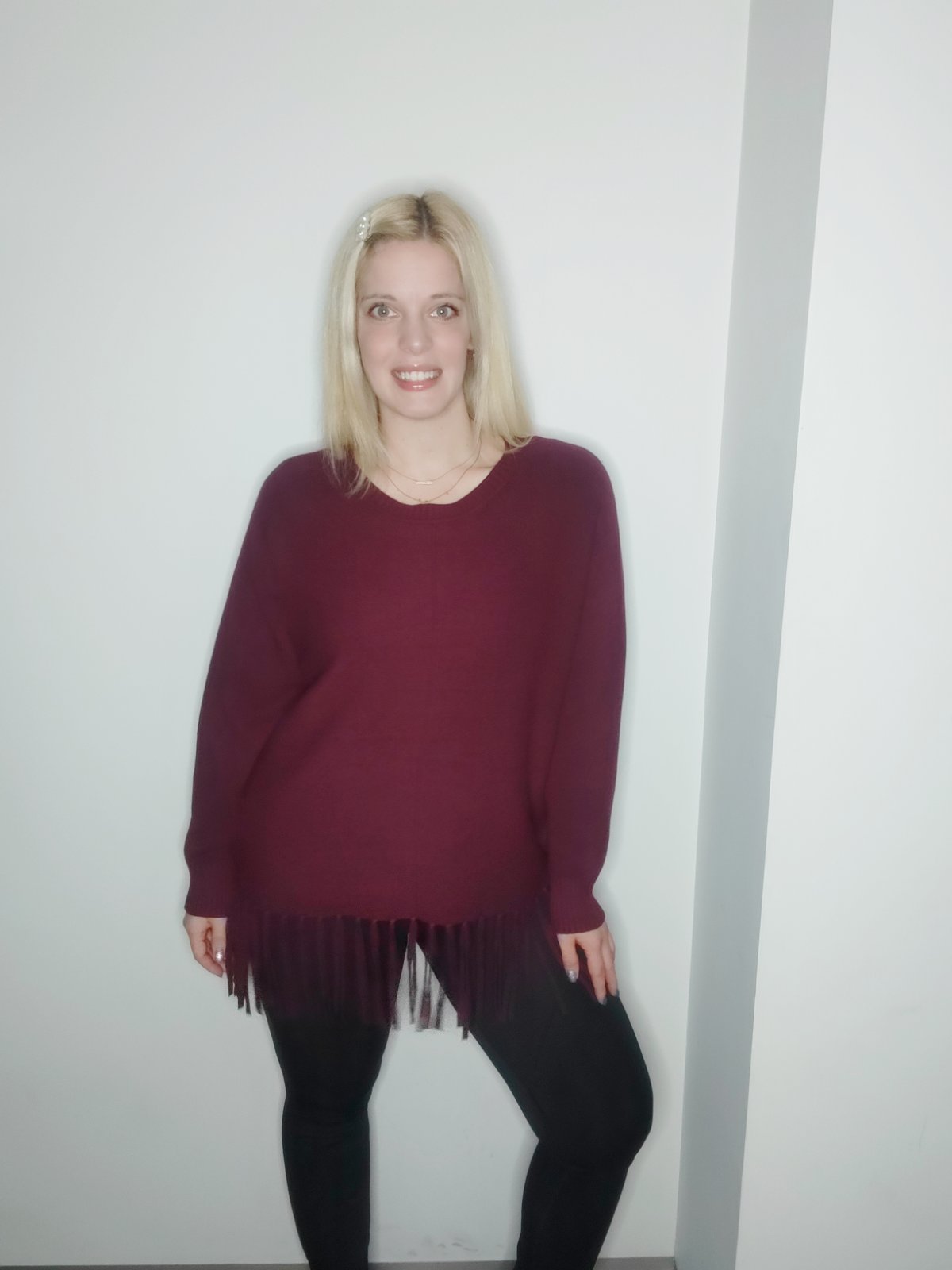 Πλεκτή μπλούζα με λεπτομέρεια από κρόσσια μπροστά