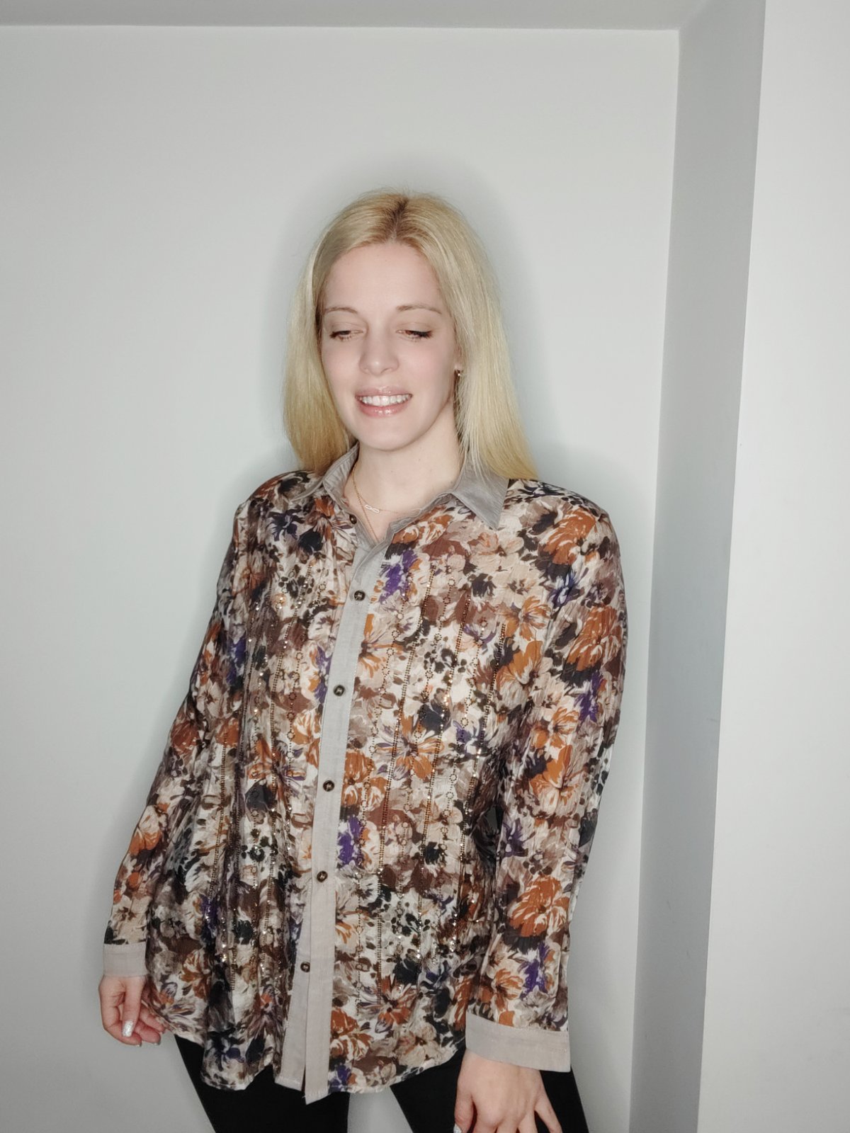Πουκάμισο με μοτίβο και λεπτομέρειες από strass μπροστά
