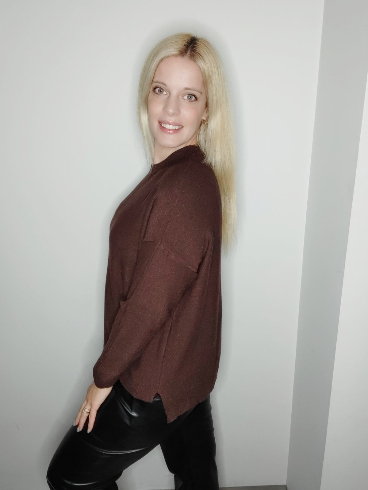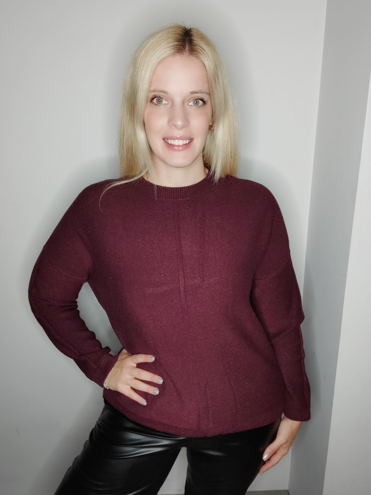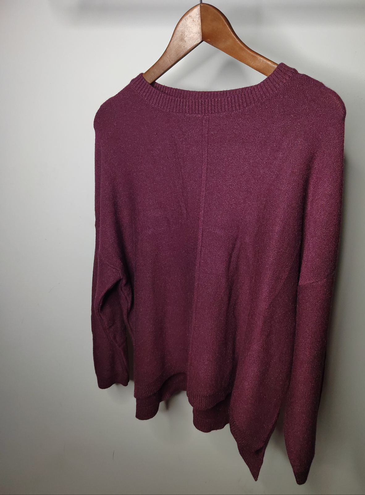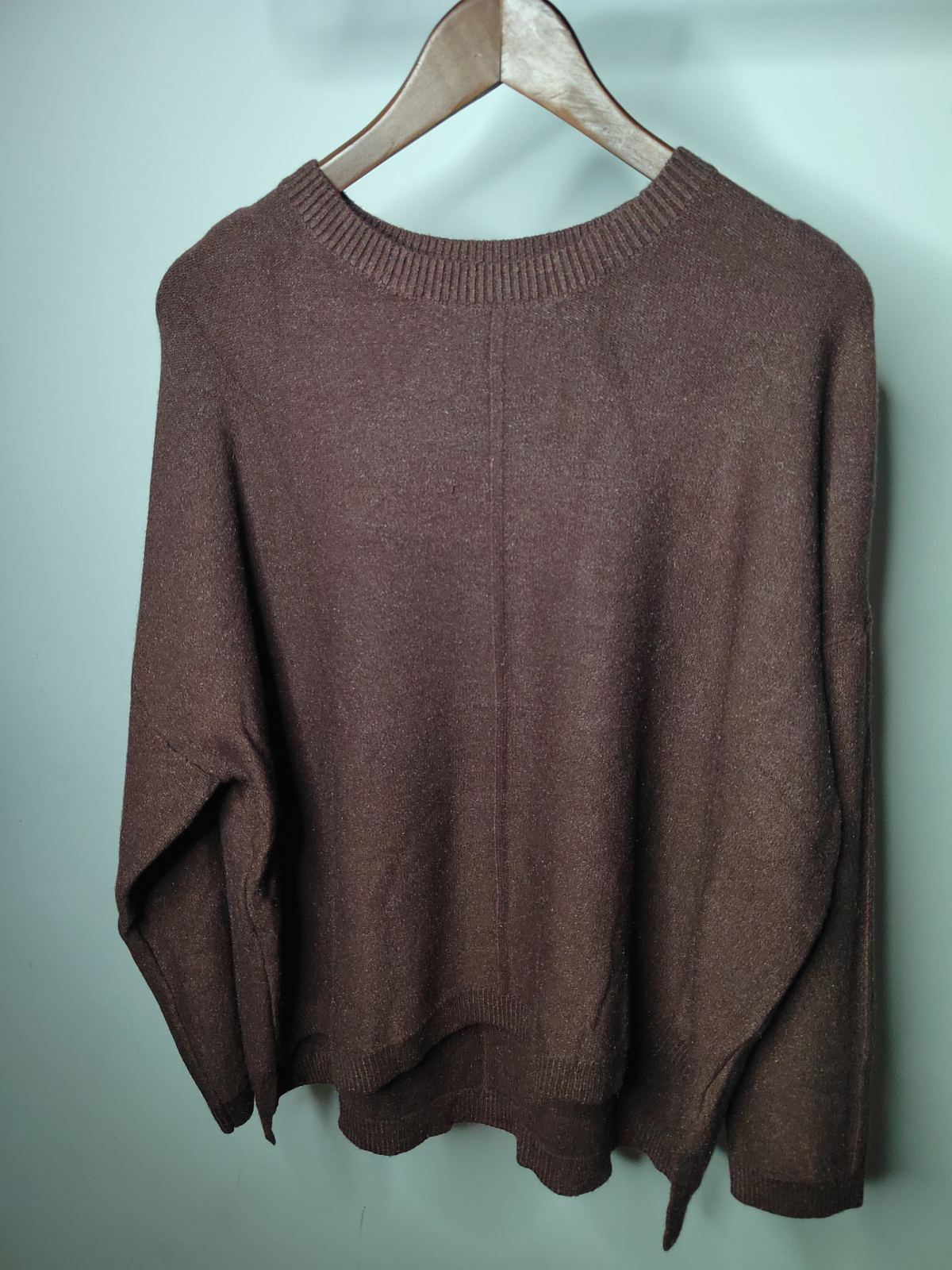 Πουλόβερ oversized με μεταλλιζέ κλωστή και V λαιμόκοψη