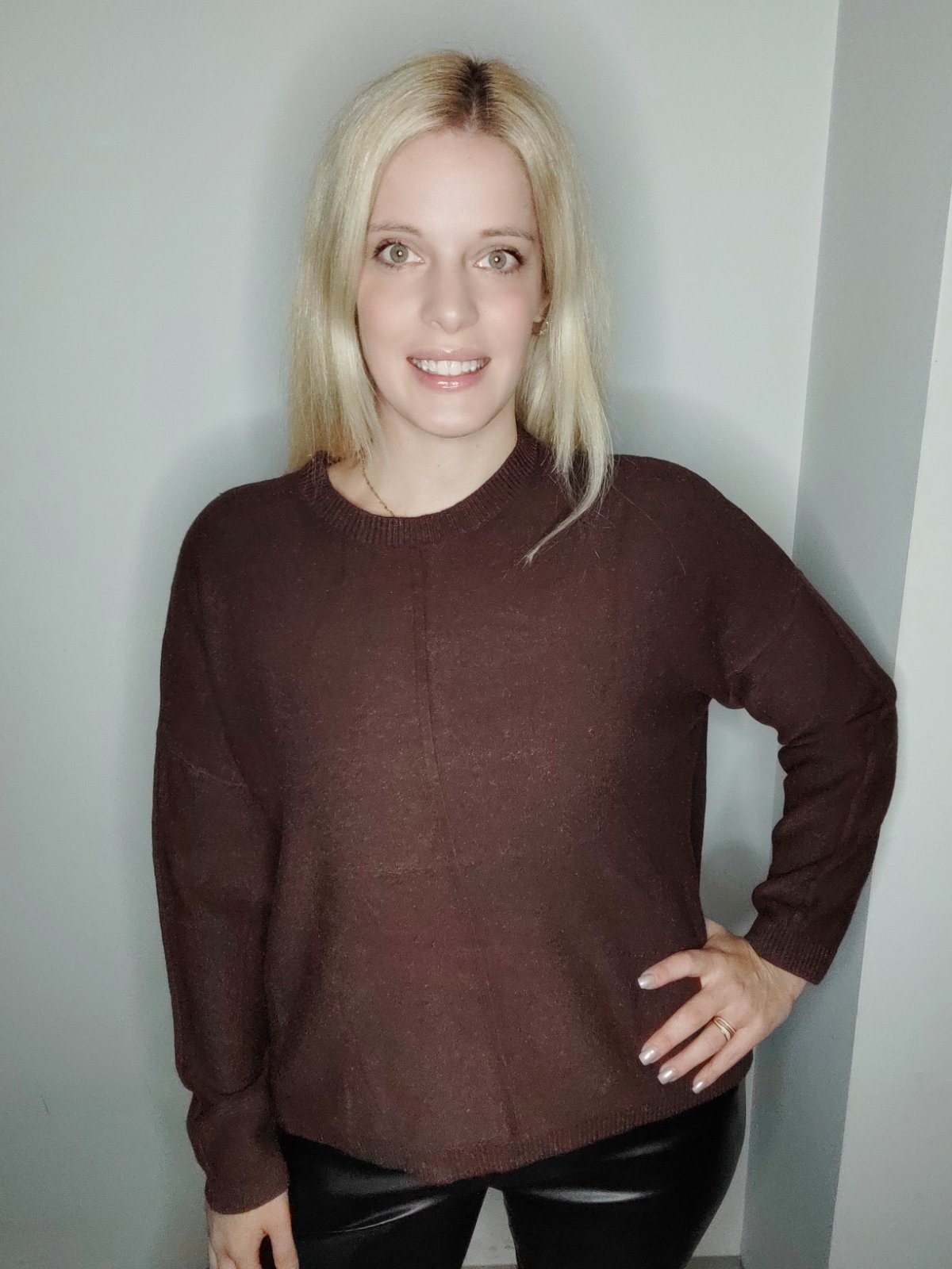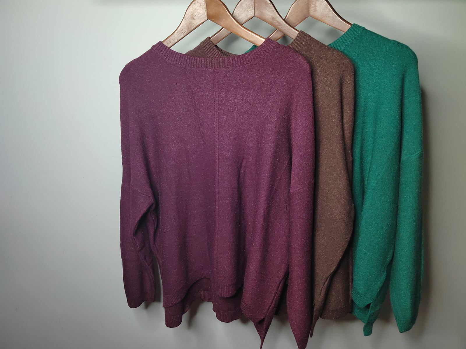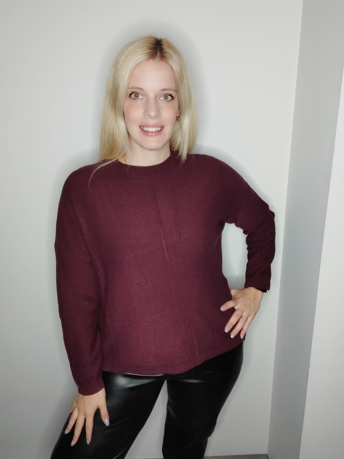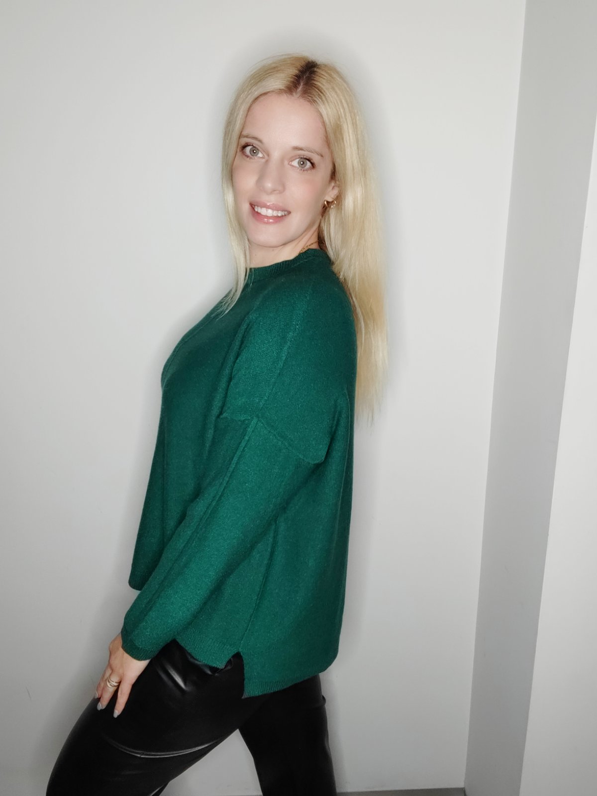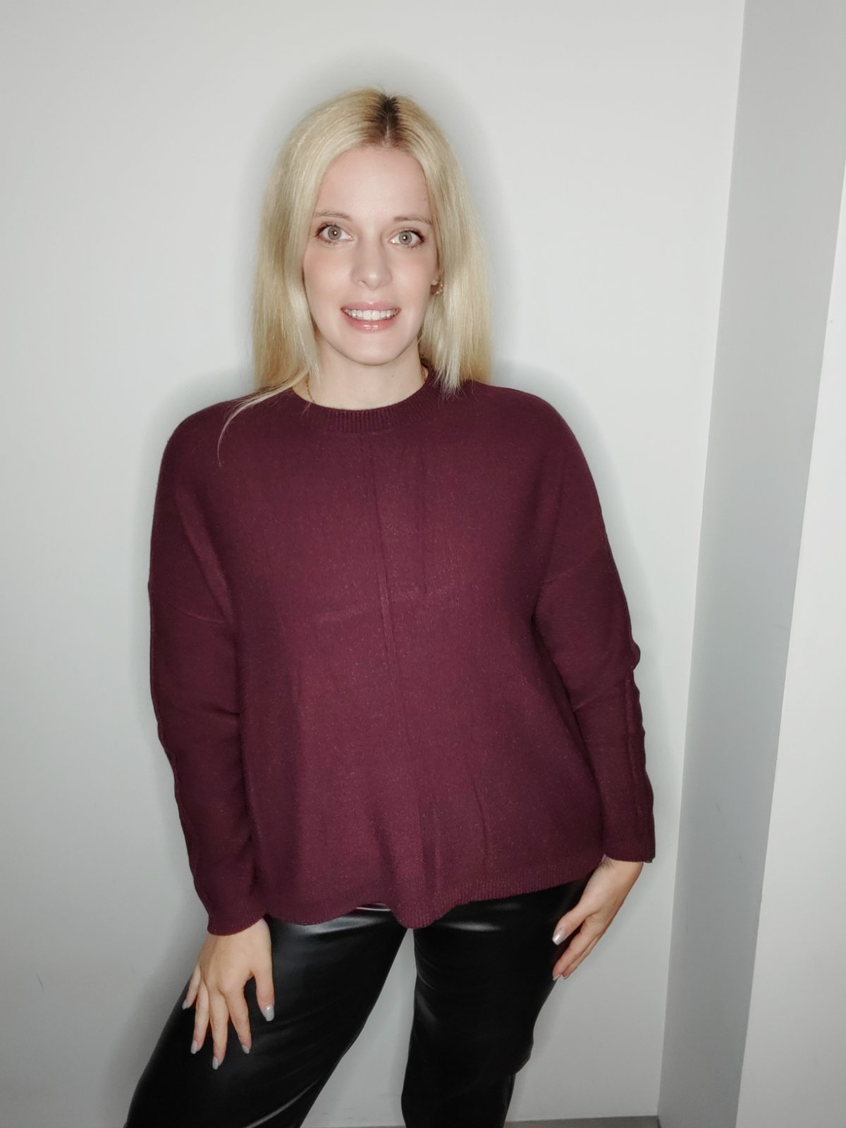 Πουλόβερ oversized με μεταλλιζέ κλωστή και V λαιμόκοψη