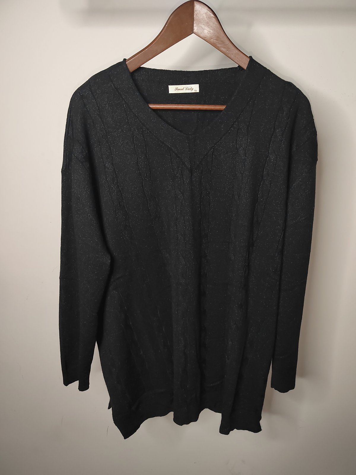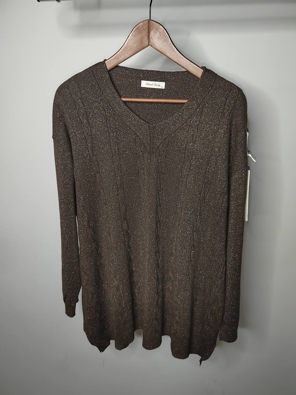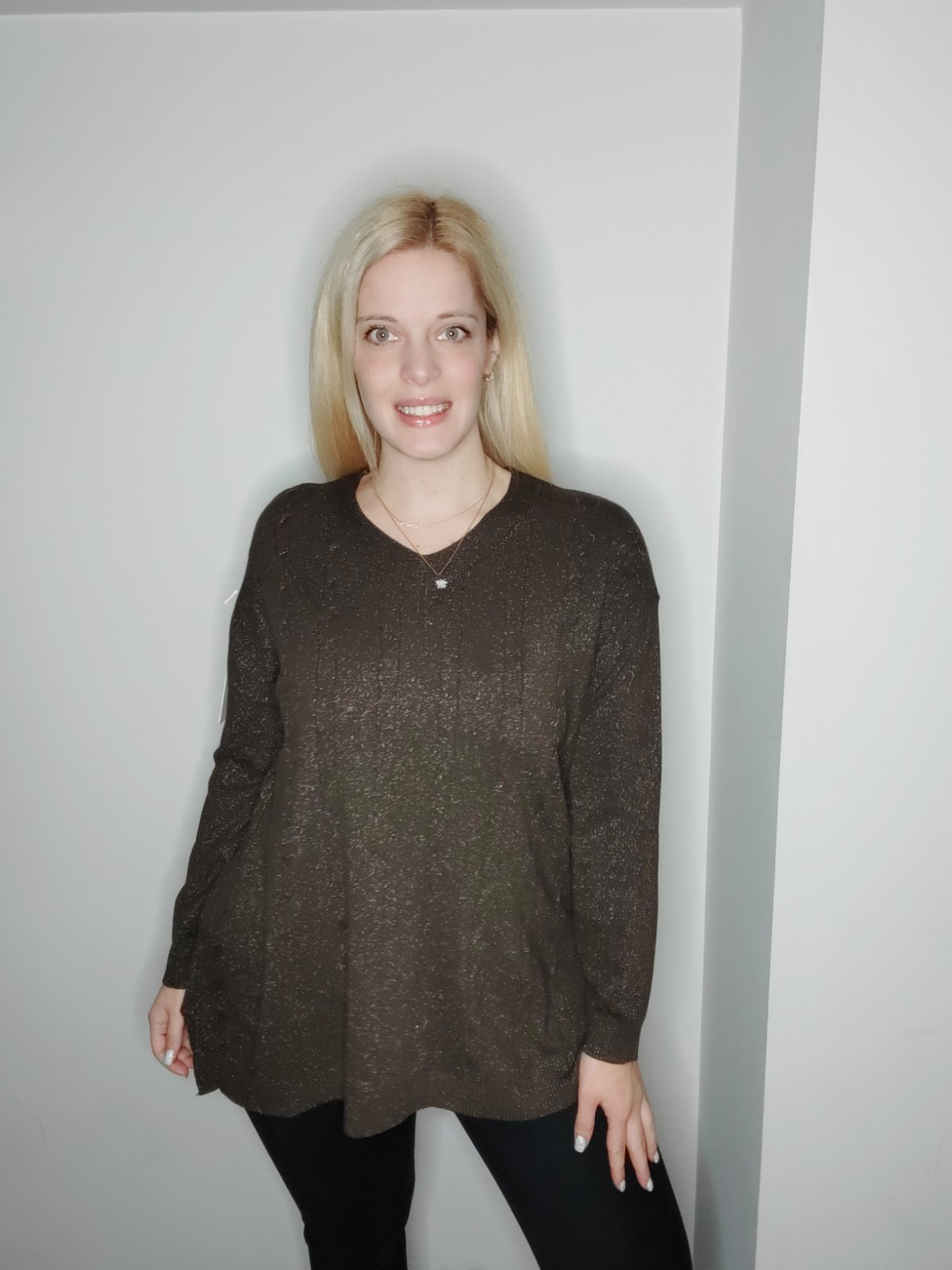 Πουλόβερ oversized με μεταλλιζέ κλωστή και V λαιμόκοψη